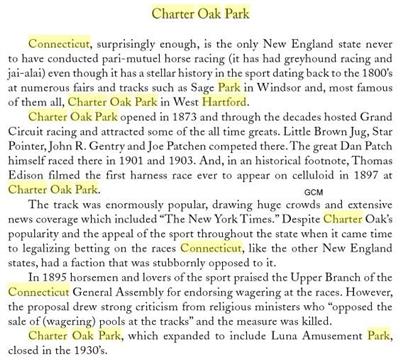 Laurel Springs Park, Charter Oak Park, Capitol Park, Weider's and Luna Park.