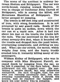 There was an accident on the Trolley Line. Till this day one can visit Pecks Mill Pond area and wander perhaps even after dark. It can be quite spooky !!!! People do seem to avoid the area.