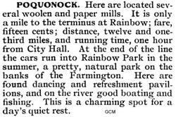 For approximately 100 years (1830-1930) woolen mills and paper mills located on the Farmington River in the Poquonock and Rainbow sections of Windsor provided employment for up to 500 people.