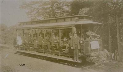 One image an 1897 Trolley showing an excursion to Rainbow Park.
