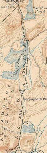 There was a railroad that passed by Cranberry Lake. It was first a mule-powered railroad to carry iron ore from Andover to the canal at Waterloo. It was called the Sussex Mine railroad. The railroad opened in the early 1850's. Soon after, it was changed to a steam railroad. The name was changed to the Sussex Railroad. The Lackawanna Railroad bought the Sussex Railroad before the end of the 19th century. The Lackawanna Railroad discovered that Cranberry Lake would be a great place to run excursion train trips.