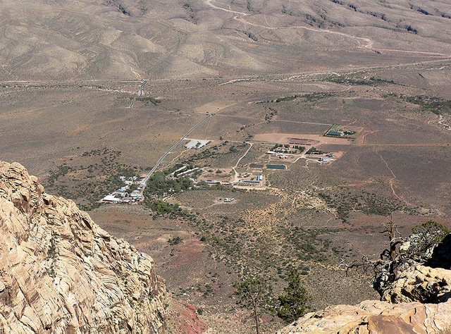 The site is located at approximately 4,000 feet elevation, and includes natural springs, which were within the Paiute peoples homeland for centuries. They moved their dwellings into small enclaves in the rocky cliffs to the west after settlers moved in.