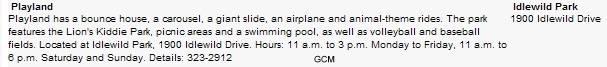 Idlewild Park Playland, a mini-amusement park run by the Kiwanis Club, has closed. When the Kiwanis took it over in 2004, the idea was to generate revenue for scholarships, but that didn't happen. The rides have been sold and the city is looking to remove the fence and return the area to grass. The train ride, though, is still there and now operated by the city.