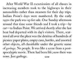 But the park began to lose its luster after World War II. The popularity of the automobile, which broadened the choice of day trips and vacation spots, doomed the steamers and, in turn, Indian Point.