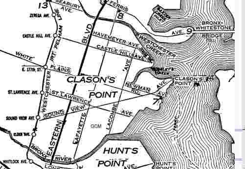 That's where we went swimming (no mention of pollution in those days). My grandmother lived in the village of Westchester or West Farms when she was younger but she and her family summered in an old army tent in Clason Point.