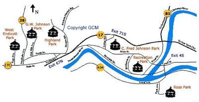 Installed in 1934 and historically restored in 1994, this carousel has 36 horses, 3-abreast and 2 chariots in its original carousel pavilion. A glass enclosure was added in 1999. Situated in the heart of Endicott's "Northside" neighborhood, the George W. Johnson Park features swimming pools, bathhouse, picnic shelter, ballfields and playground.