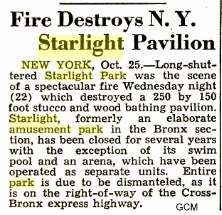 1942 the amusement park was closed when the government took it over as a truck facility. After the war there was a fire that destroyed the property. The cross Bronx Expressway now goes through that property. A bus terminal is now being built where the amusement park once stood.