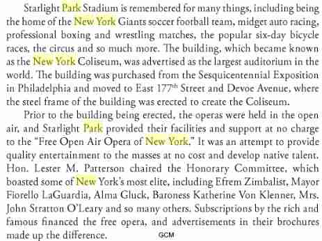 West Farms, Two miles to the North is a crossroads in the Bronx, with trolley, elevated train and suburban railroad terminals it is also a stop for the world famous Bronx Zoo and Botanical Gardens. The old Coliseum and Starlight Amusement Park were located here. the large enclosed Coliseum was shipped here from Philadelphia and sports events, midget auto races and circuses were held there.
