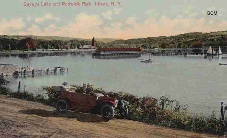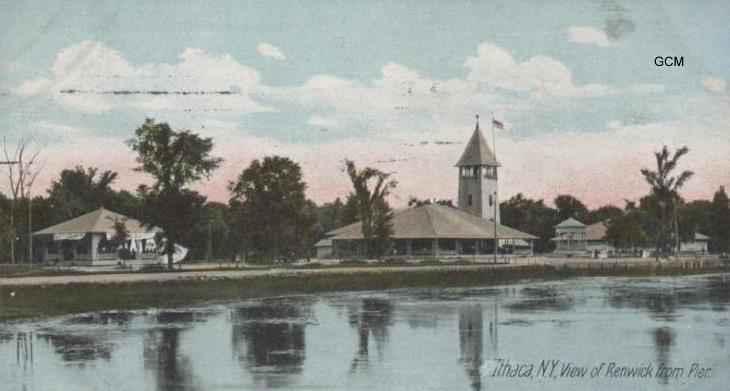 1893-The Cayuga Lake Electric Railway Company runs a trolley to Cayuga Lake. In June, Renwick Park opens. On July 4th, 12,000 people celebrate Independence Day at the park. On August 2, the restaurant pavillion is complete. Renwick pier is built for steamboat excursions.1894 The Renwick Park dancing pavillion, bandstand, water tower and other structures, all designed by architects Vivian and Gibb, are complete.