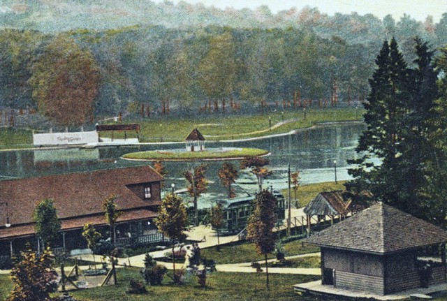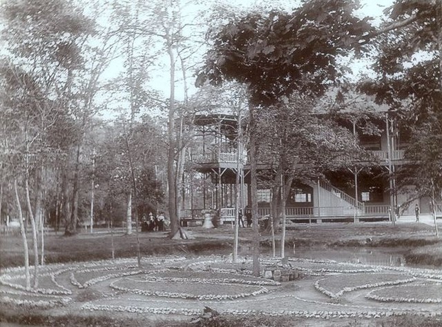 The most impressive attraction was that of the Dance Pavilion, a 60 feet wide x 100 feet long two-story building surrounded on all sides by 12 feet wide balconies with gazebos on each corner that served as a resting place for those who spent time inside the theater or dancing on the specially designed "spring floor". In addition to the Dance Pavilion, visitors could take in a game at the baseball field, eat at the cafe or many picnic areas, listen to outdoor concerts and watch comic operas at the bandstand, stroll or bike along the wooded trails, and find amusement at the animal menagerie and shooting gallery.