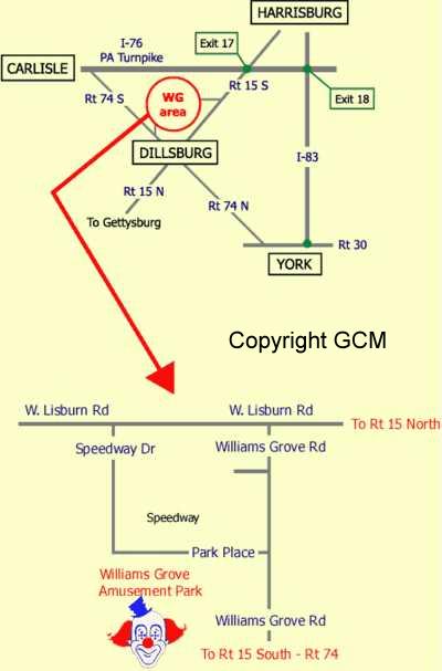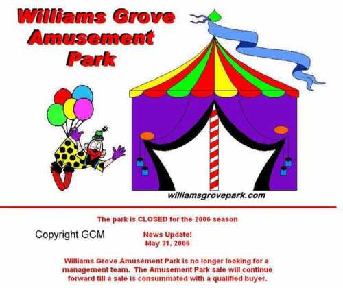 Williams Grove closed in 2005 and all was auctioned in 2006-7. A Miniature Railroad 'hobby club' organization still seems to operate on land next to Williams Grove Park.