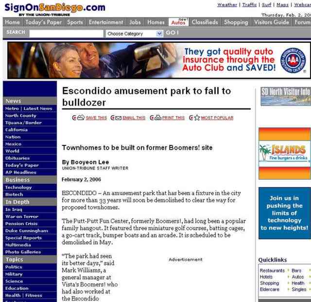 Family Fun Centers, Putt-Putt Amusement Center. Formally Boomers. Attractions unknown but some Boomers had a Carousel. Torn up 2006. Closed in 2005 after 33 years. The change from Boomers to Putt-Putt unknown so will just group them together for now.