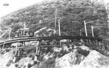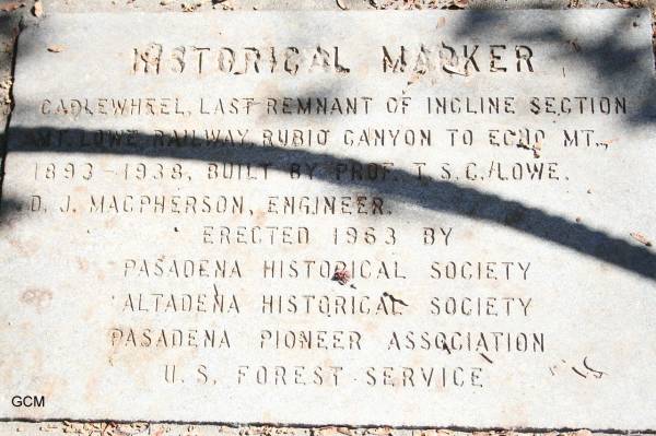 On 6 January 1993, Echo Mountain, also referred to as Mount Echo, was delineated as part of the Mount Lowe Railway monument area listed by the U.S. Forest Service on the National Register of Historic Places. On top of the mountain are the ruins of "White City", a resort along the scenic Mount Lowe Railway, which could easily be seen from the valley below. From its point and down an incline to its foot in Rubio Canyon was the Great Incline funicular of the Mount Lowe Railway, whose white cars could be seen ascending and descending Echo.