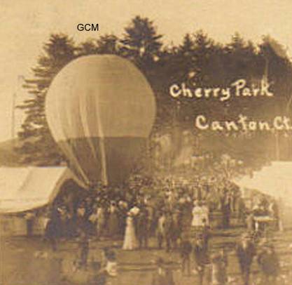 For a dime, Connecticut Western train passengers could catch a shuttle from the Cherry Park crossing stop, at Canton Springs Road, to the site. In the 1870s and 1880s, one of the most popular attractions at Cherry Park was the so-called balloon ascension. The acknowledged father of Connecticut ballooning, pioneer Silas Markham Brooks made a reported five balloon ascensions from Cherry Park. As a matter of fact, it was at Cherry Park that Brooks, a supposed prot�g�e of P.T. Barnum, made an historic balloon ride from Canton to Hubbardston, Massachusetts.
