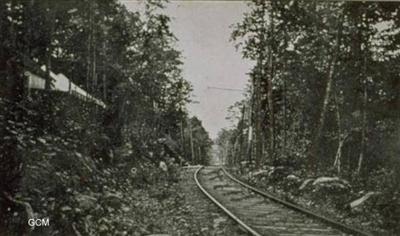 Ravine Park, Franklin, Connecticut. The railroad appears to be the Central Vermont Railroad on its Franklin, Connecticut line. More information needed....