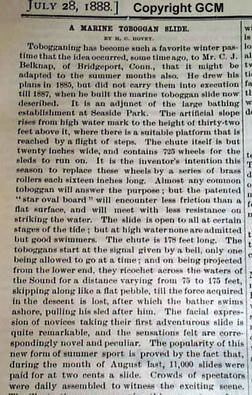 I saw mention of Water Slides at Seaside Park mentioned in an 1888 publication and I dug up the publication via microfilm.