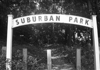 The town purchased the property in 1999, and today it is a heavily-wooded public park with walking trails and a playground at the north end. A replica of the original entry arch stands at the entrance, and there are some remnants left of the old trolley park including: