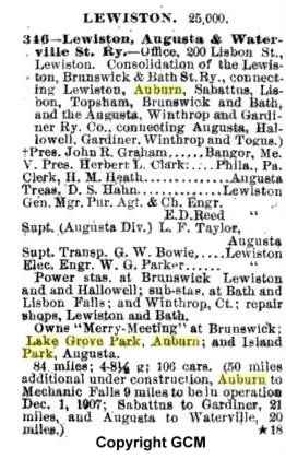 The local Streetcar trolley run by the Lewiston, Brunswick, and Bath Street Railway, linked the three towns and offered its passengers a five-cent ride that also included admission to the new Merrymeeting Park, which was built to be "a recreational reason for using the trolley". The Railway owners, who were instrumental in the establishment of the park, had great hopes for the Parks long-lived success.