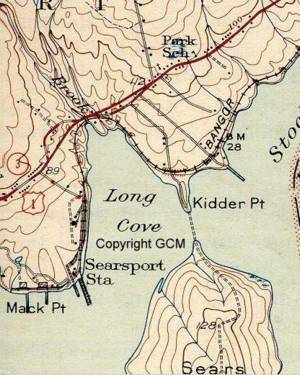 Park advertisements promised the "most picturesque spot on the Maine coast." Part of the scene was the big industrial development that the B&A had built around the area in Searsport and Stockton Springs. The view from the park included the Searsport station of the B&A and the new "coal pockets" at Mack's Point, where large vessels were constantly discharging coal for the railroad and the mills of northern Maine. "At low tide it is an interesting stroll to cross the bar and visit Sears Island ... This big island is owned by a syndicate of men prominent in the Bangor & Aroostook Railroad Company and in the not distant future it may be the scene of extensive summer resort developments," said the Industrial Journal.