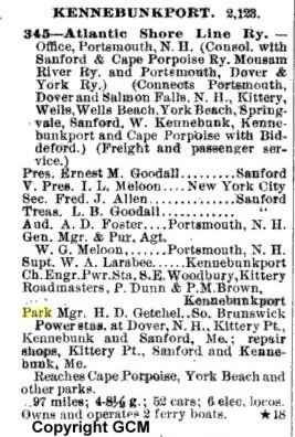 Cape Porpoise, Maine. As an Amusement Park ?? I include because it is included as a destination/park for the Trolley. I presume it would not be listed or called a Park by the Trolley if ??? More information needed.