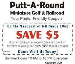 North Hampton, New Hampshire. Putt-A-Round Miniature Golf and Railroad. This is only included because they have an operating Miniature Railroad. I think they rescued it from one of the Amusement Parks that closed in Rhode Island.
