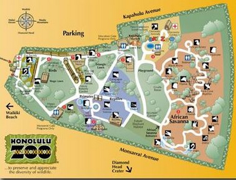 It is the only zoo in the United States to be established by grants made by a sovereign monarch. Built on part of a 300 acres (121 ha) royal park in Waikiki known as Queen Kapiolani Park, the Honolulu Zoo now features over 1,230 animals in specially designed habitats. Over 601,510 people visit the zoo annually. The Honolulu Zoo Society provides fundraising and educational services for the zoo. The zoo is administered by the City & County of Honolulu through the Department of Enterprise Services. Twilight Tours