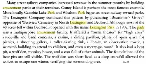 As at Norumbega, an amusement park was built in Lexington near the Bedford town line, to attract riders from the city.