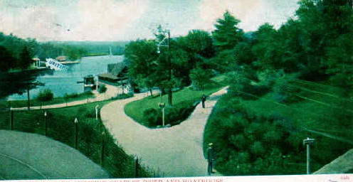 Norumbega was tremendously successful, attracting hundreds of thousands of patrons each season. Its location on the Charles River meant that the park was accessible by water as well as by land. In the early years of the twentieth century, the Lakes District of the Charles was the most heavily canoed stretch of water on earth, with more than 5000 canoes berthed along its 5.8 mile length. Norumbega, along with the Riverside Recreation Grounds in Weston and more than a dozen other local recreational facilities in Newton and Waltham, became famous for recreation, competition, romance and fun. People from all walks of life came to the riverside via steam trains and electric trolleys. By the 1905 season, the outdoor theatre at Norumbega had given way to an enclosed facility. The beautiful new theatre featured topnotch vaudeville entertainment, musical plays, comedies, and melodramas, as well as Mr. Edison's moving pictures" shown on a device called a Komograph. The Great Steel Theatre at Norumbega was the largest theater in New England, and the parks zoo was also the largest in the six-state region.