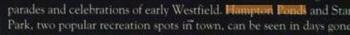 Hampton Pond straddles Hampshire and Hampden Counties in western Massachusetts. It lies near the Holyoke town border in Westfield and Southampton. It was, like many such areas, developed in the late 1800s to serve the quick-growing industrial city of Holyoke. In 1903, the electric trolley reached it, ensuring its popularity. A bandshell and lake house were built in the park, and evening dances were held in the summer. For working-class people, a park such as Hampton Pond offered an opportunity to leave the close quarters of the city for inexpensive recreation.