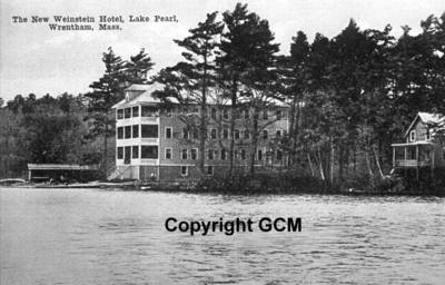 In June of 1927 and just at the beginning of the tourist season, Weinstein's burnt and had to be closed until it was rebuilt. Hundreds of seasonal guests flocked to it to enjoy its facilities as well as those of Lake Pearl Park, which abutted the hotel.