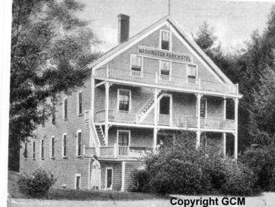 The Washington Park Hotel, the only one of the three hotels on the lake that was not on the shore, was built up the hillside and had three levels of porches providing a spectacular view of the lake and of the summer sunsets.