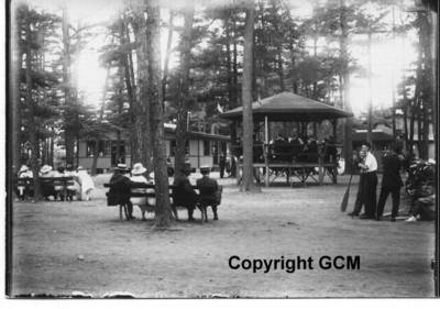 The Picnic Grove provided a fine place from which to enjoy an open Band Concert on a bright, warm Sunday afternoon after a day on and in the water. One could partake of Lake Pearl Park's own ice cream, served at its 100 foot Ice Cream Bar and made with the help of ice harvested from the lake in the winter months and which was stored in the Park's icehouse on the shoreline .