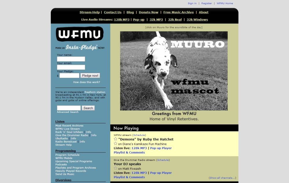In 2006, WFMU was awarded a grant from the New York State Music Fund, a program created by the Office of the New York State Attorney General Eliot Spitzer to make contemporary music of all genres more available and accessible to diverse audiences in New York State. WFMU's grant included funds to create a podsafe online music library known as The Free Music Archive, which launched on April 10, 2009. The website describes itself as "a social music website built around a curated library of free, legal audio." Currently it hosts over 45,000 podsafe songs for free for streaming or download, many under Creative Commons licenses.The Fund grew out of settlements with major recording companies investigated for violating state and federal laws prohibiting "pay for play" (payola). Grant winners were chosen on criteria that included, among other things, their record of broadening awareness of artists, genres or styles with limited access to commercial broadcast or other mass distribution vehicles.