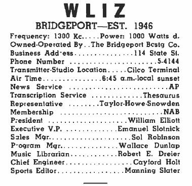 This station is mostly a total unknown. It had radio broadcast towers on Bridgeport Harbor. Locations conflict at times (east harbor or west ?) but who knows ? Established in 1946 and it only lasted into the early 1950's.