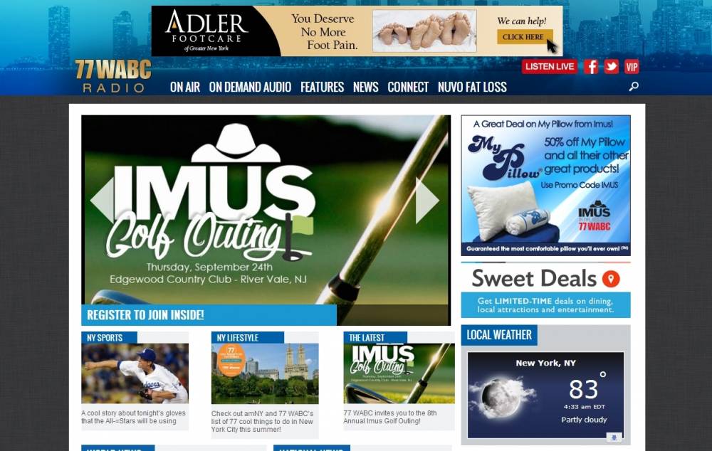 On January 1, 2013, the traffic reports on WABC switched from Clear Channel's Total Traffic to Radiate Media's Right Now Traffic. Taking over traffic during the syndicated Imus In the Morning and the afternoon drive Sean Hannity Show is Jeff McKay, one of New York City's most recognizable traffic voices.