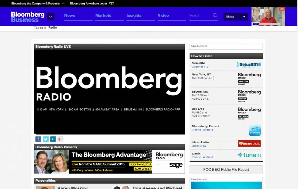 Bloomberg Radio is also streamed live on Bloomberg.com.