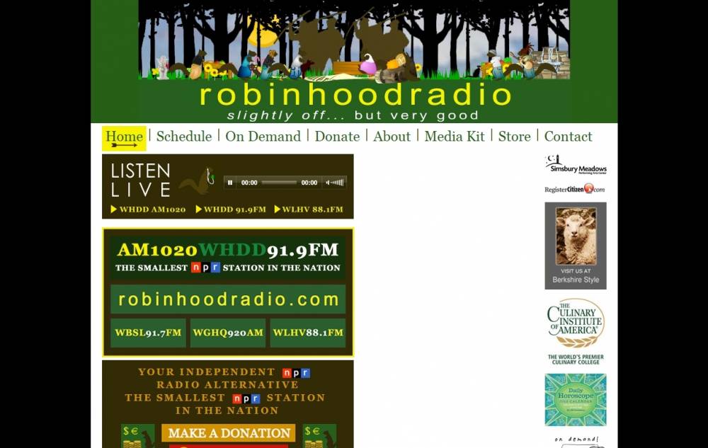 WHDD-FM (91.9 FM, "Robin Hood Radio") is a NPR-affiliated radio station licensed to serve Sharon, Connecticut. WHDD FM is owned by Tri-State Public Communications. It is the smallest NPR-affiliated station in America. WHDD-AM 1020 was prior WKZE. The AM antenna is actually in Millerton,New York.