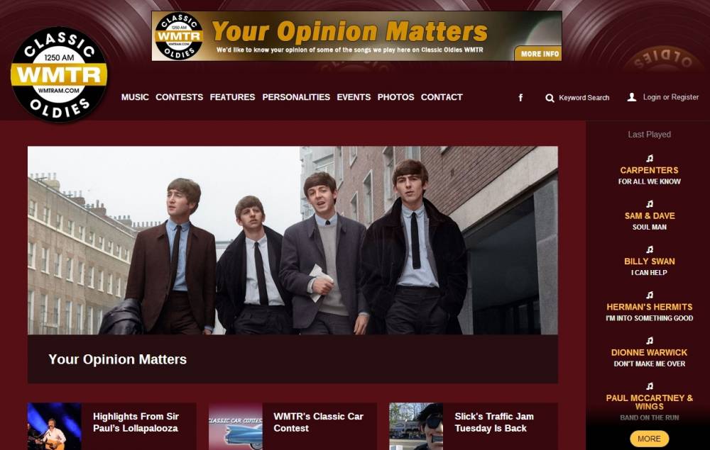 WMTR's core artists include Beatles, Elvis Presley, Four Seasons, Beach Boys, Martha And The Vandellas, Everly Brothers, Three Dog Night, Ricky Nelson, Rolling Stones, Spinners, Leslie Gore, Fats Domino, Supremes, Four Tops, Bee Gees, Association, Buddy Holly, Young Rascals, and many more.