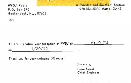 The station was hampered by a directional signal that covered Manhattan and parts of New Jersey well but suffered in the rest of the Five Boroughs and was virtually nonexistent on Long Island and western New Jersey. Eventually, FM competition from WCBS-FM and adult top 40 station WXLO (now WEPN-FM), and an evolution to adult Top 40 by WNBC (now WFAN), began to eat into WWDJ's ratings. In November 1973 it was ranked 15th in the Arbitron ratings.