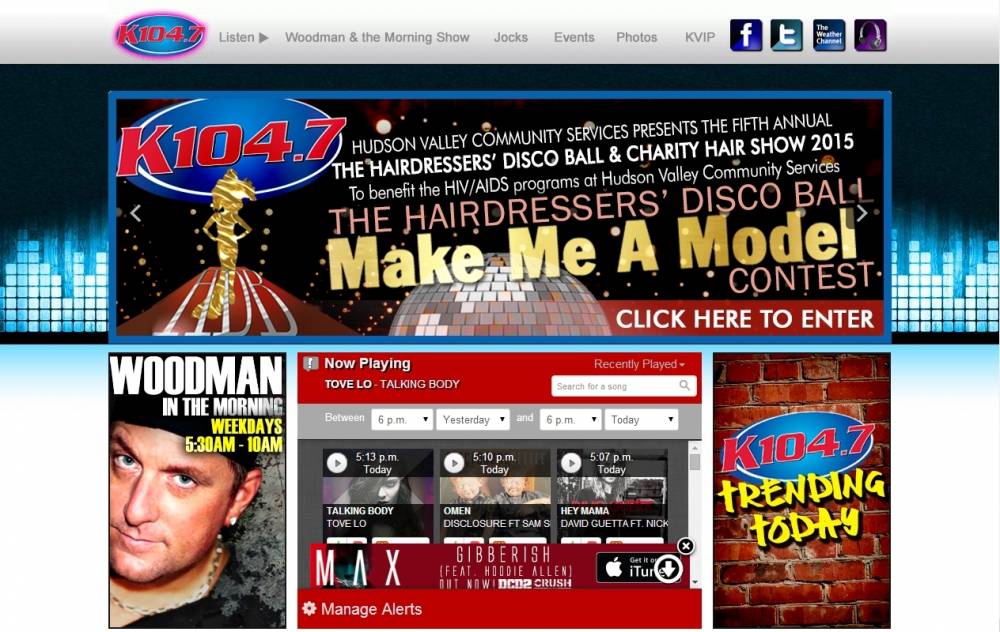 K-104 is one of the few Hudson Valley radio stations (along with co-owned WHUD) that is live 24/7. This allows much better audience interaction than can be found on its voice tracked competitors. Many other Hudson Valley stations, notably Clear Channel stations, are voice-tracked virtually all day long, with almost nobody inside a building that's home to 14 stations.