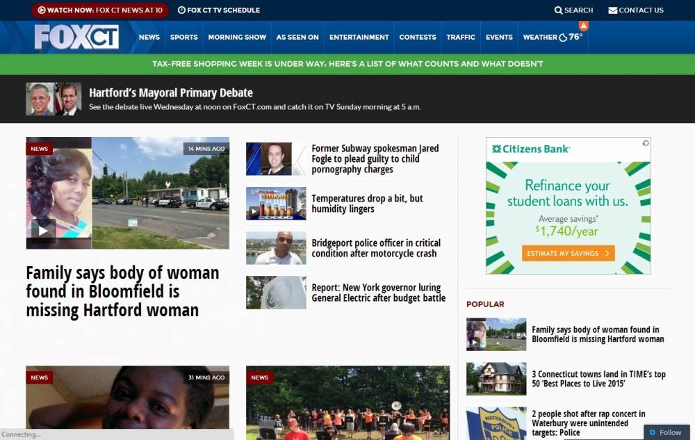 Fox CT News open. The logo and graphics used during newscasts are identical to those used by stations owned by Fox Television Stations. WTIC-TV presently broadcasts 45½ hours of locally produced newscasts each week (with seven hours on weekdays, three hours on Saturdays and 3½ hours on Sundays); in regards to the number of hours devoted to news programming, it is the highest local newscast output of any television station in the Hartford-New Haven market as well as the state of Connecticut.