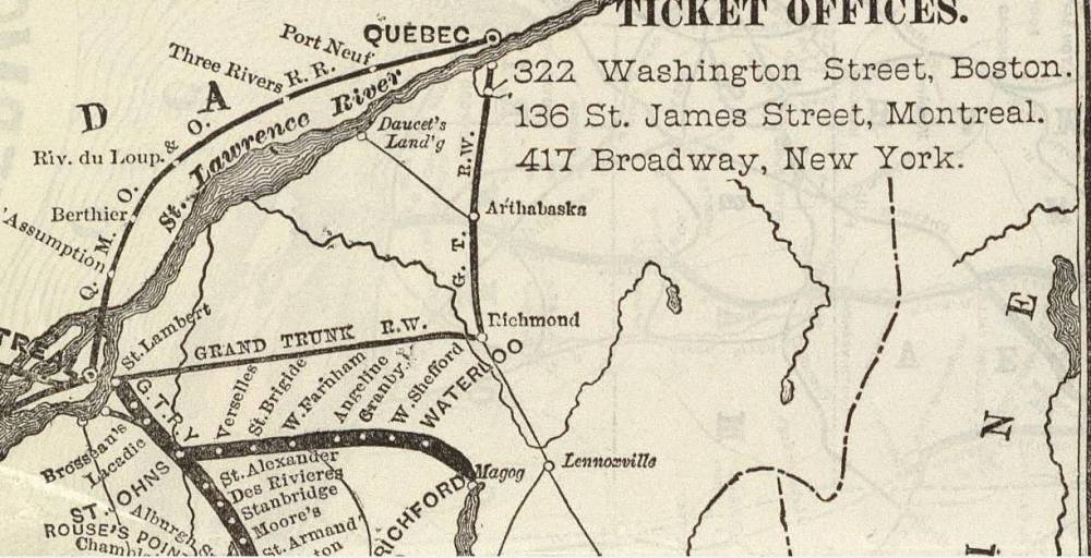 In 1867 the Vermont Central leased the Stanstead, Shefford and Chambly Railroad, running east from St. Johns to Waterloo. The Waterloo and Magog Railway was later built as an extension from Waterloo south to Magog.