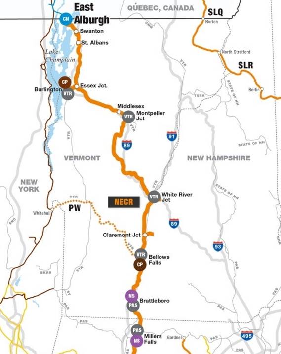 The New England Central Railroad is the successor to the Central Vermont Railway, which was sold by the CN to the RailTex Corp. in 1995, at which point it was renamed the New England Central.