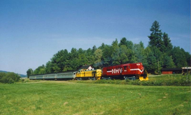 The New Hampshire and Vermont operates freight service from a connection with the St. Lawrence and Atlantic Railroad at Groveton NH, to Waumbeck Junction and Woodsville, 60.3 miles. The railroad has trackage rights over ST Rail System from Woodsville to White River Jct. VT, 40.5 miles, where interchange is made with the ST (B&M). A branch line runs from Waumbeck Jct. to Berlin, 19.7 miles. Additional connections were made with the Twin State Railroad at Whitefield and the Berlin Mills Railway at Berlin. By 1995, Most of the line between Berlin and WRJ was out of service. The NHVT was owned by CSF Acquisitions and is affiliated with the Lamoile Valley and Twin State railroads. The NHVT had three locomotives, an Alco RS-11 #405, GP9 #669 and a GP38 #3800.