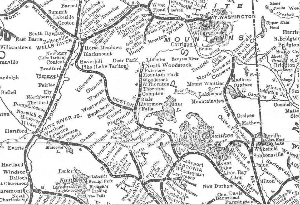The tracks in Wolfeboro were extended across Main Street to a dock on the shore of Lake Winnipesaukee for easy connections to lake steamboats, with a waiting room on the first floor of a factory. On Christmas Eve, 1899, the building burned down, and in 1900, the B&M built a new Lake Station.