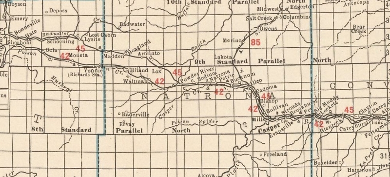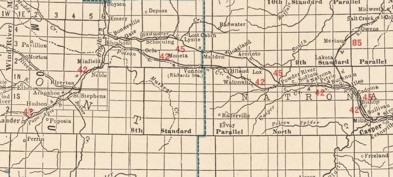 From its inception the line was leased to the FE&MV and in 1891 the two railroads were consolidated under the FE&MV name. In 1903 the FE&MV merged with the Chicago and Northwestern railway. The C&NW eventually extended the line to Shoshoni and Riverton in 1905 and Lander in 1906. In 1943 the line west of Casper was abandoned and salvaged. When Union Pacific merged with the C&NW in 1995, UP announced its intention to abandon the portion of the line from Orin Junction to Casper.
