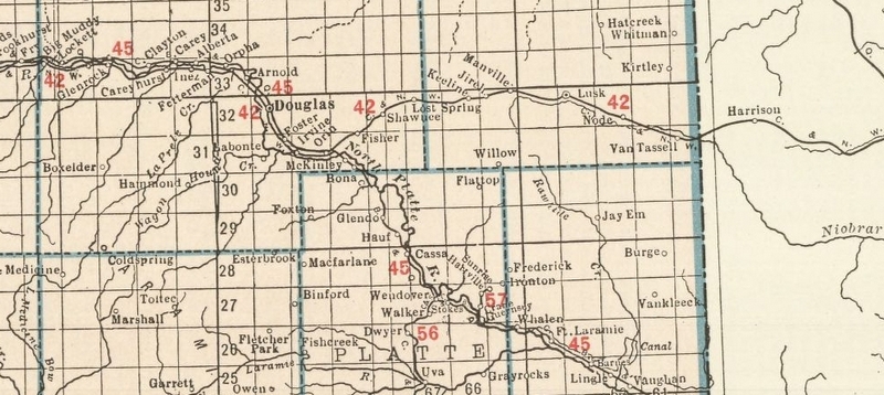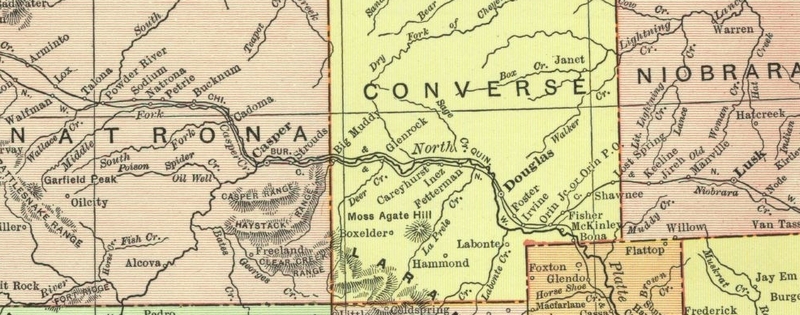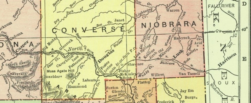In 1885 the laws of the Wyoming Territory required railroads building or operating in the territory to be incorporated in the territory. In order to extend the line west from Nebraska, the Fremont, Elkhorn and Missouri Valley Railroad incorporated Wyoming Central Railway as a dummy firm based in the town of Lusk which was laid out by the railroad in July 1886. Local landowner Frank S. Lusk was named as a director and only resident stockholder of the Wyoming Central company. The line was rapidly extended to the new town of Douglas near the former location of Fort Fetterman. In 1887 the line was constructed to Glenrock. In June 1888 the railroad reached the future site of the town of Casper which was platted out by the railroad at the end of 1888. The town was named for nearby Fort Caspar which was an important stop on the Oregon Trail.