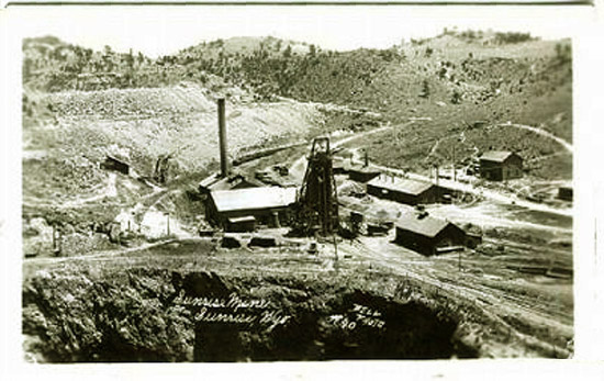 Initially, the mining methods used at Sunrise were strip mining followed by glory-hole mining. In 1930, underground block caving mining was started, and by World War II all mining was underground. Ore mined was partially processed on site and then sent to Colorado Fuel and Iron mills in Pueblo, Colorado.