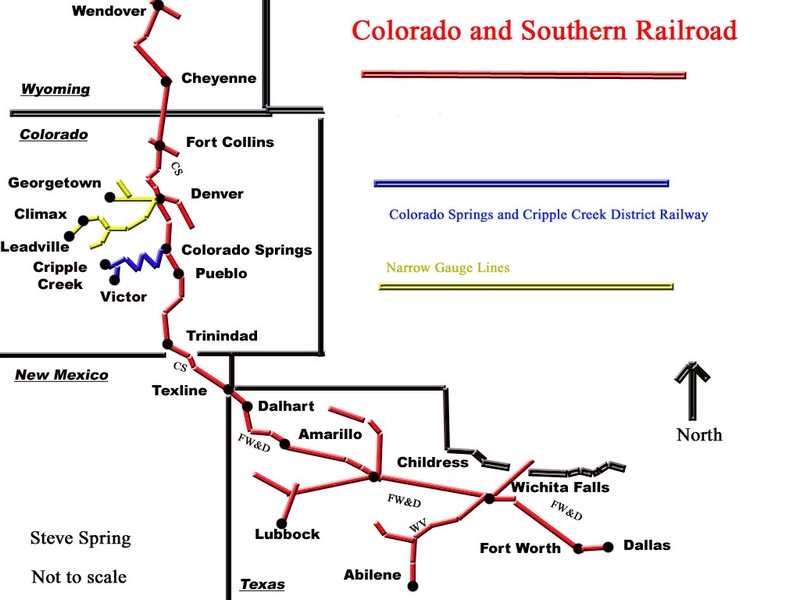 C&S was also the parent company of the Fort Worth and Denver Railway, which ran from a connection at Texline south and east into Texas. The FW&D was established as a separate company because Texas law required that railroads operating within its borders must be incorporated within that state.