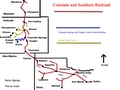 The Colorado and Southern narrow-gauge lines were formed in 1898 from the Colorado Central and the Denver, South Park and Pacific Railroads. The narrow gauge had four distinct lines: the Platte Canyon Line from Denver, Colorado to Como, Colorado, the Gunnison Line from Como to Gunnison, Colorado via Alpine Tunnel, Highline between Como and Leadville, Colorado, and the Clear Creek line from Denver to Silver Plume, Colorado. Major Branch lines were the Baldwin branch between Gunnison and Baldwin; the Keystone from Dickey, Colorado to Keystone, Colorado; the Blackhawk branch between Forks Creek and Central City, Colorado; the Alma Branch from Como to Alma, Colorado; and the Morrison Branch from Denver to Morrison, Colorado. The Colorado and Southern narrow gauge operations never owned a new engine, all the motive power was inherited from the former companies.